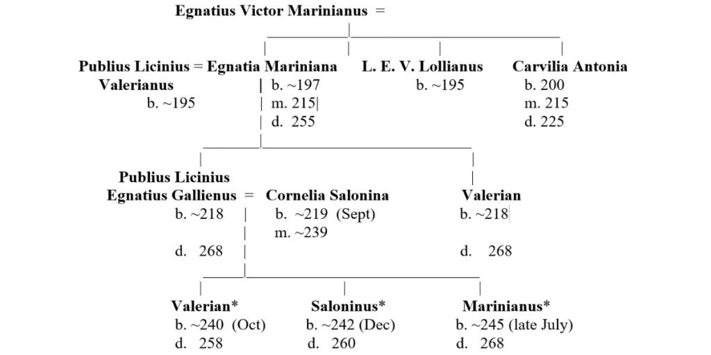 - Dates of birth for the following are conjectural: Salonina, Valerian (Gallienus’ brother), all Gallienus’ children